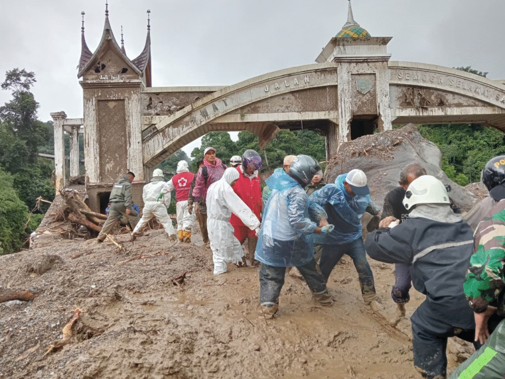 Relawan-relawan PMI Kota Padang Panjang turun langsung bersama stakeholders PB lainnya untuk membantu masyarakat melewati jalan raya Padang-Bukittinggi yang rusak parah didaerah Silaing sekaligus ikut membersihkan ruas jalan tersebut dari sampah kayu-kayu dan lumpur akibat Banjir Badang / Galodo.